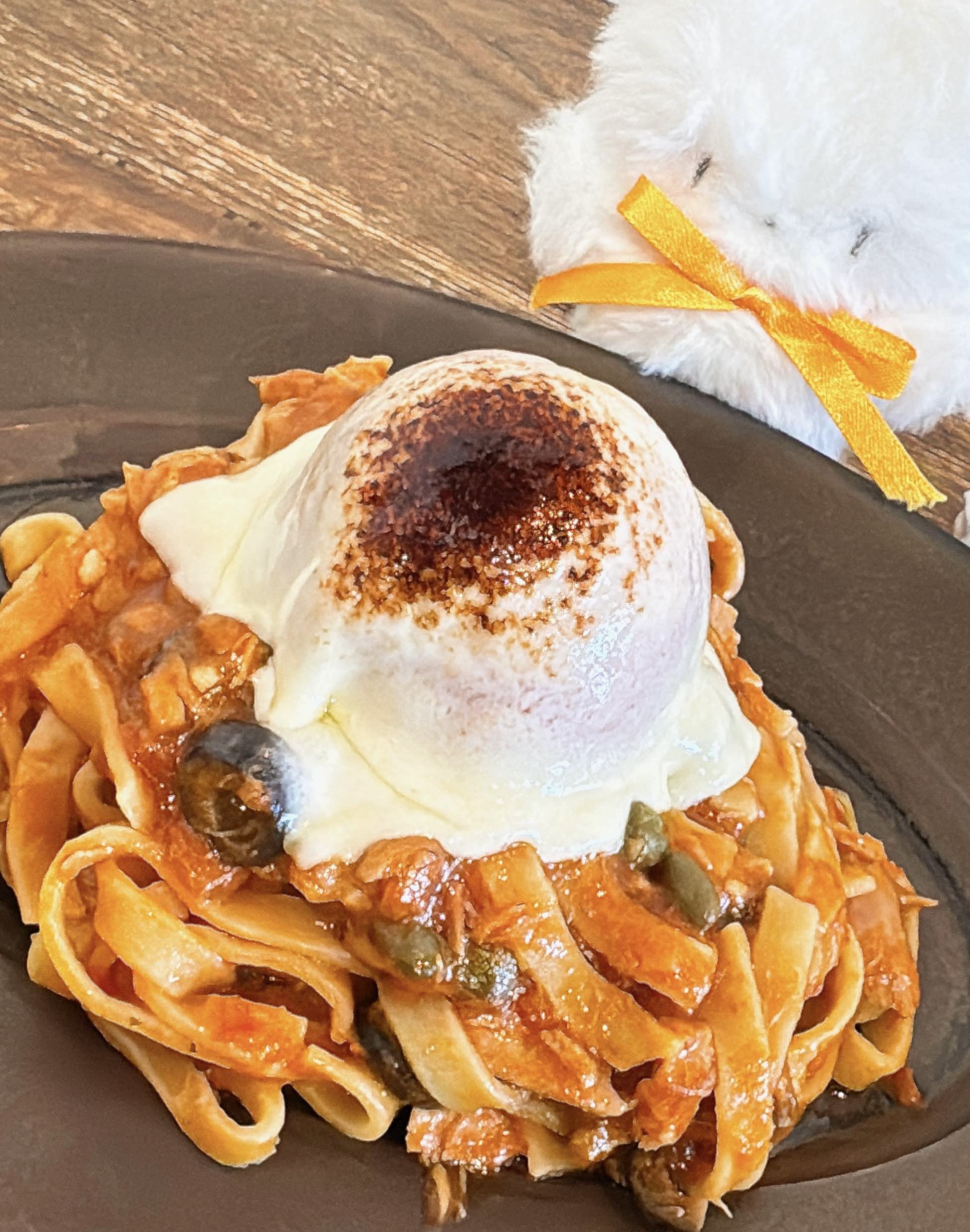 パスタも美味しかったけど、上に乗ってる焼いたトマトにチーズがかかっているものを崩して食べるのが本当に美味しかった