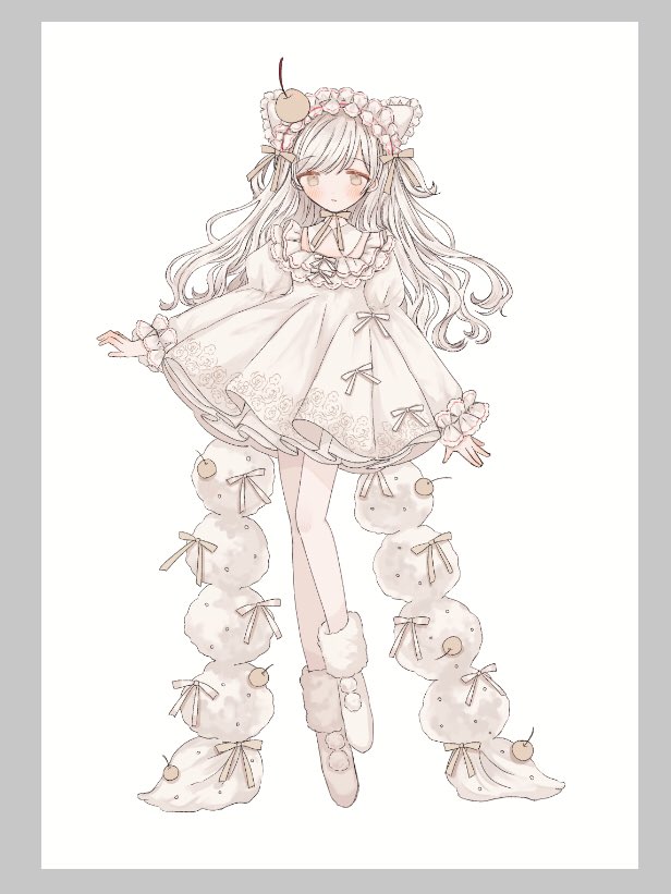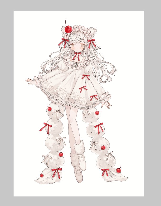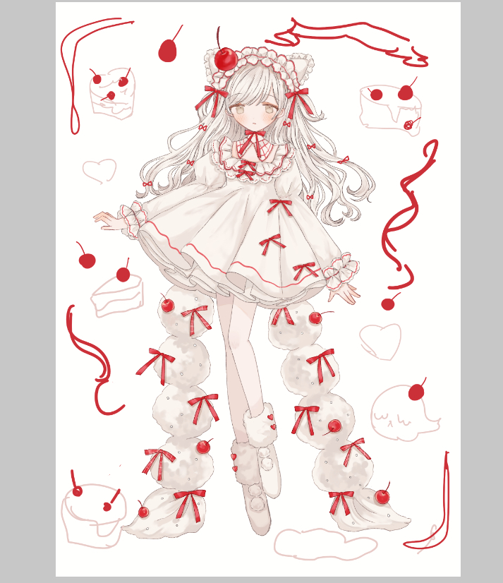 白×赤好きなのでそういう白赤のケーキとかを周りにいっぱい描きたいな~という絵なのですが…果たして…