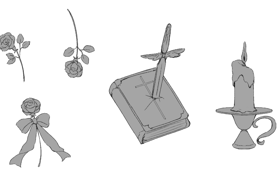 人物が出来たので小物を描き…色分けまで行かなかった ねむい~