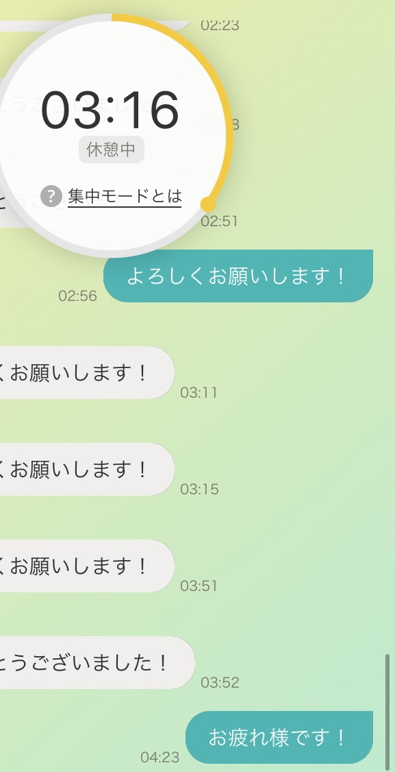 他の作業者のことはあんまり気にならないかも 誰がいるかも覚えてないし でも誰かいると誰かいるんだな~って思うし、チャットが動いてるとあ~人の気配~とも思う