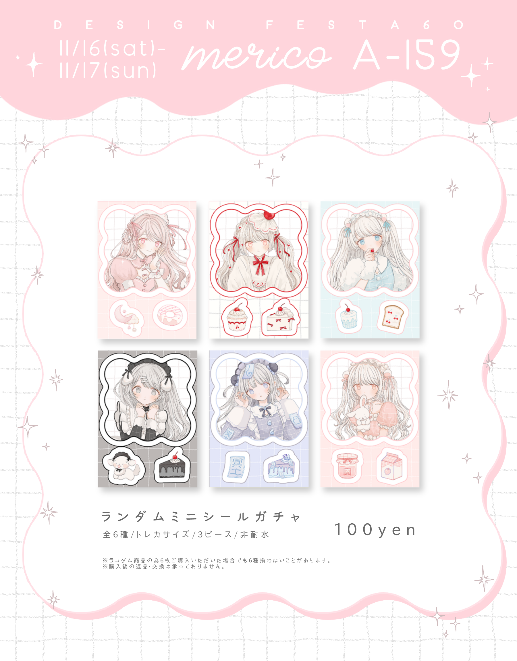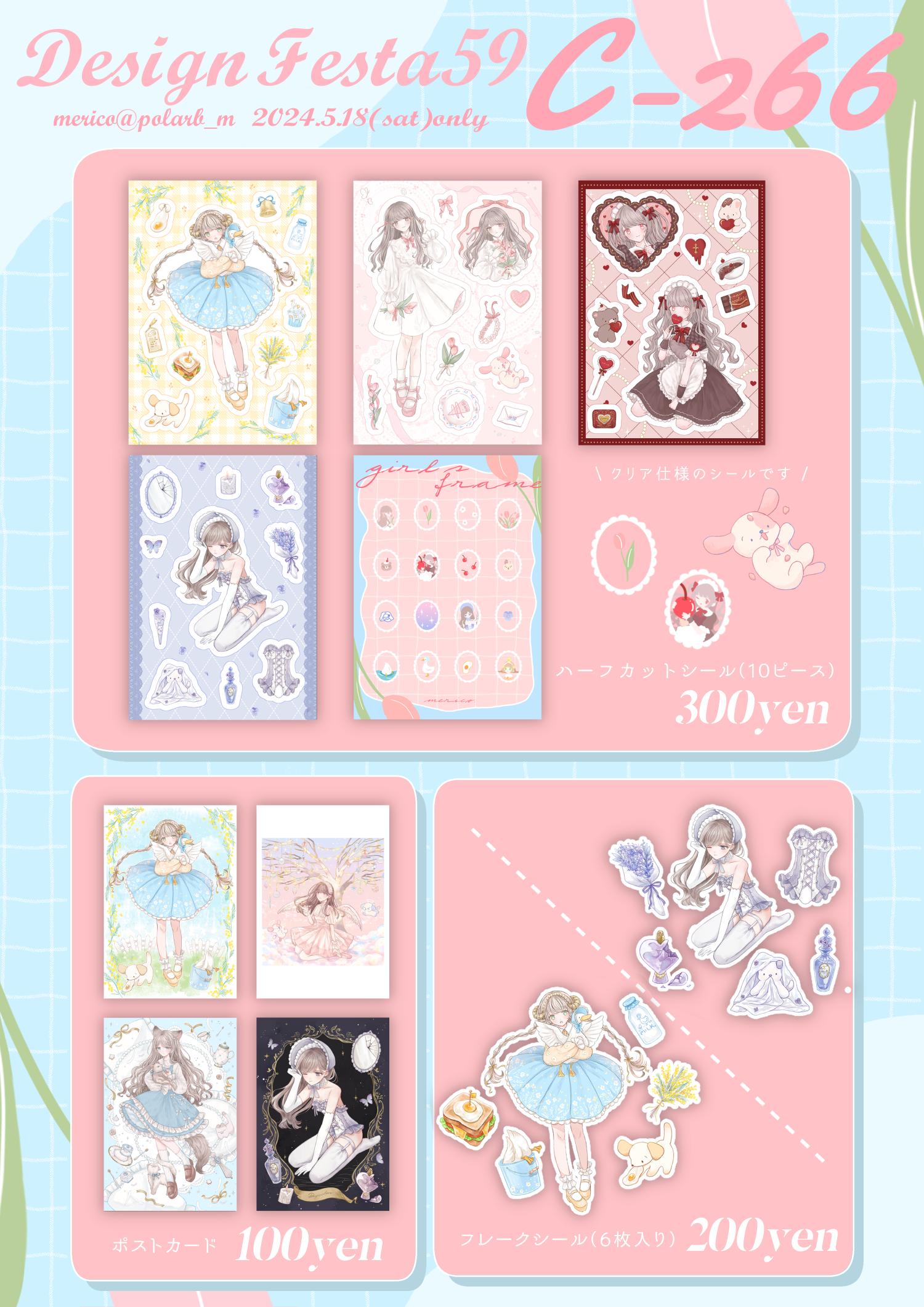 安心出来たので今後もハーフカットシール、フレークシール、ポストカードの3つで出していこうかな~って思います!次はハーフカットとフレークは絵柄違いで出そうかな…?