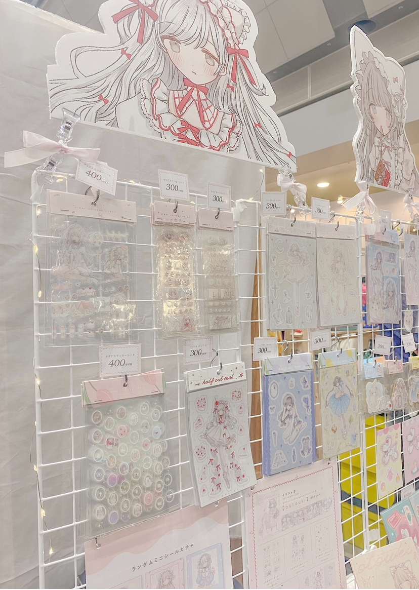 比較的ハーフカットシールをメインで手に取って頂けることが多かったです!そうなんだ~フレークシールも単体で手に取って貰えることが多かったのでやっぱりここは欲しいと思ってくれる人の使用用途が違うのかな?