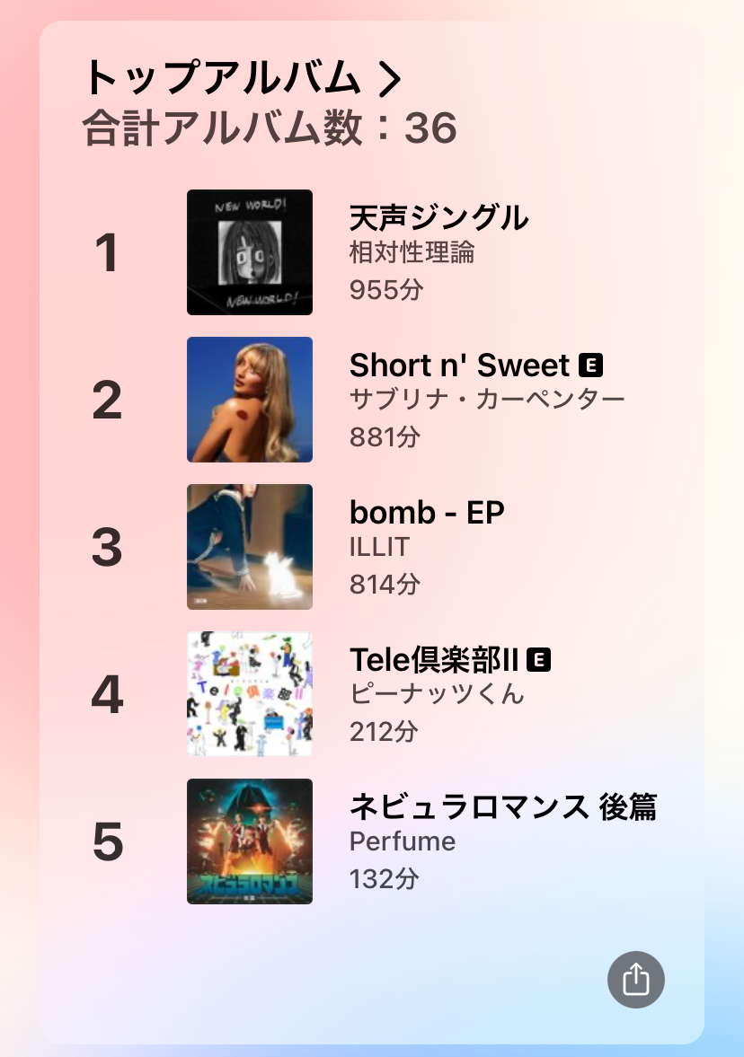 アーティストだとにゅじもずーーっと聞いてるな~