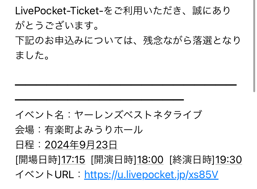 ていうかしれっと申し込んでしれっと行こうと思ってたヤーレンズのベストネタライブ普通に落選した!ガーン…