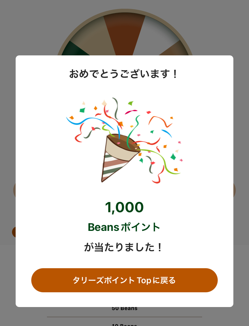 タリーズのアプリで引けるポイントが当たるガチャ、かなり確率がゆるい
