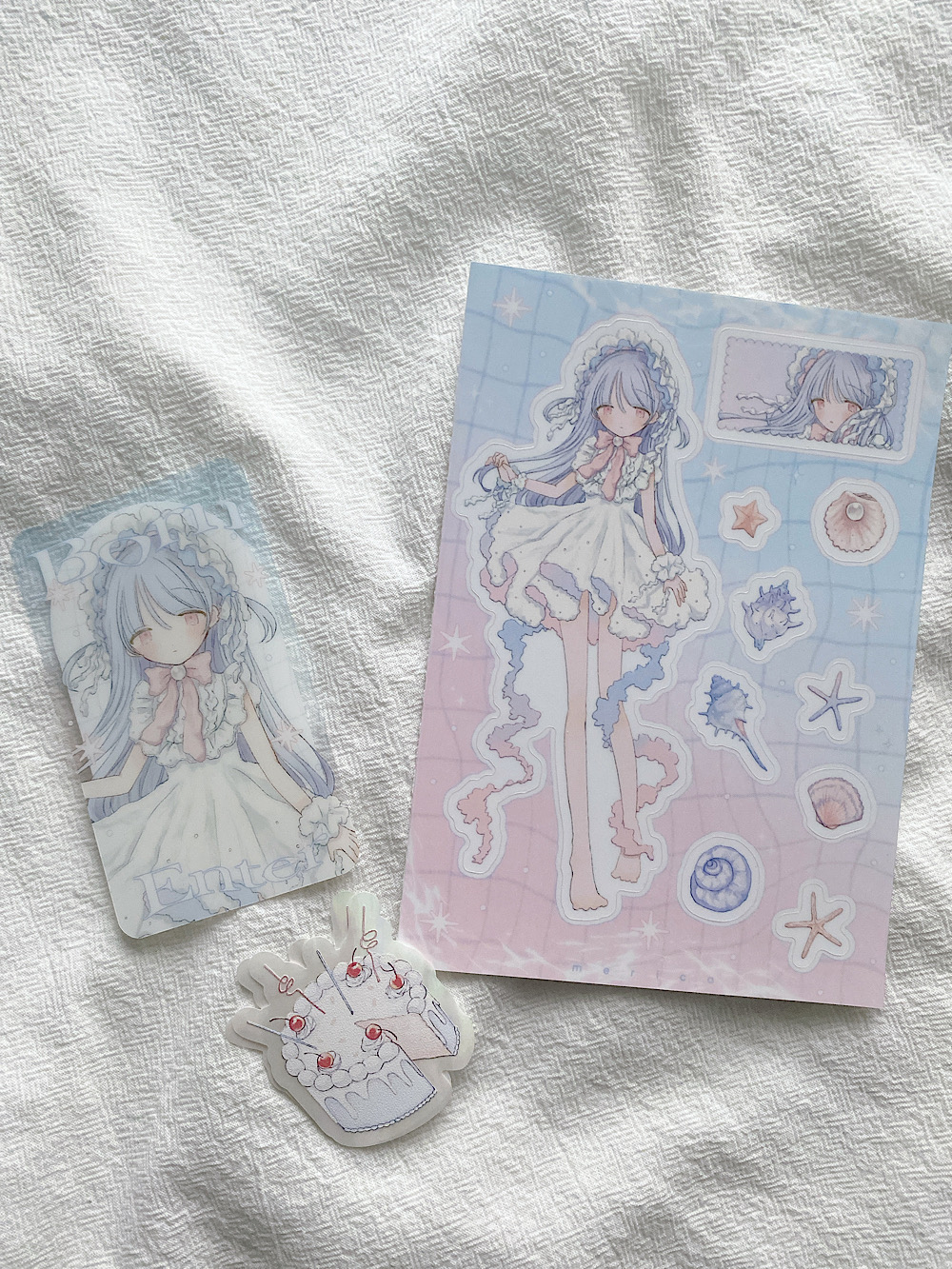 ハーフカットシールとちょっときらっとしているステッカー、クリアトレカカード