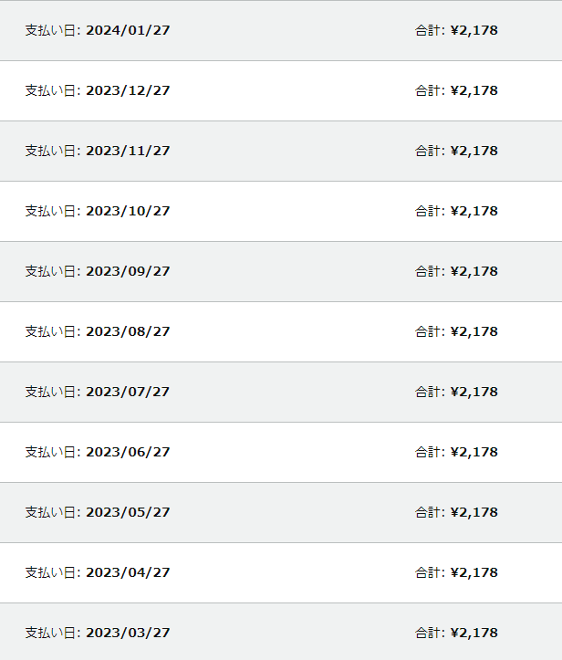 Amazonで契約していて、私は毎月それなりの金額Amazonを利用しているので、クレカ明細を見ても全く疑問に思わなかったし引き落としに気づいてなかった